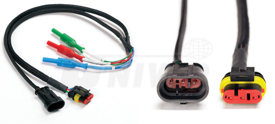 Odbočkový kabel TA012 umožňuje měření napětí na řadě 2-pólových snímačů a akčních členů s konektory v motorovém prostoru. Kabel se zapojí do příslušného kabelového svazu a pomocí testovacích kabelů Premium TA125 až TA128 se získá výstupní signál s využitím banánkových konektorů (4 mm) pro připojení k osciloskopu.