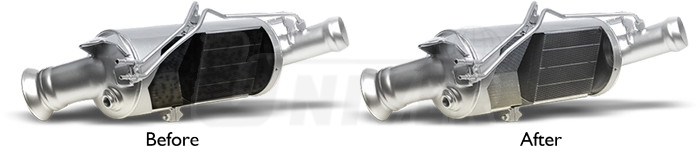 - technologie čištění je šetrnější vůči struktuře DPF, nedochází k narušení / popraskání komponentů filtrů pevných částic jako u metod, které pracují s velmi vysokými teplotami, DPF není nutné řezat a svařovat, nejsou zapotřebí ultrazvukové nádrže apod.