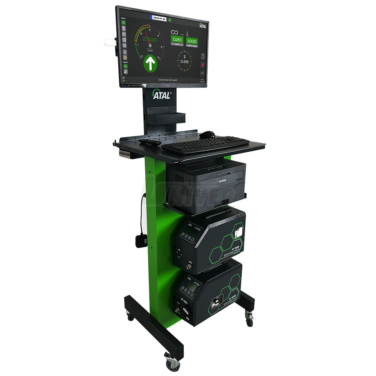 - modul kouřoměru (AT608) používá unikátní optickou lavici ATAL s vysoce výkonným zdrojem světla, systém proudění kouře v měrné komoře eliminuje znečištění měřící optiky, přístroj používá velmi lehkou 6 m dlouhou vytápěnou odběrovou sondu, je univerzální pro osobní i nákladní automobily, přístroj má vestavěnu čistící proceduru sond před zahájením měření každého vozidla