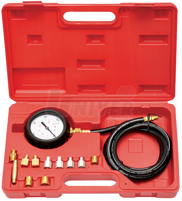 Přesný přístroj pro měření tlaku oleje v motorech a automatických převodovkách osobních i nákladních automobilů.- 12-dílná sada pro měření tlaku oleje v motorech osobních i nákladních automobilů
