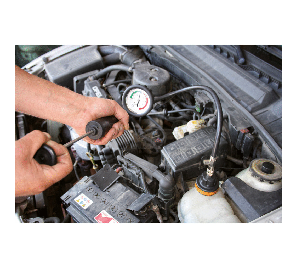 - rychlé vyhledání netěsností v chladicím systému, například netěsnost chladiče, vadné těsnění hlavy válců, vodní pumpy, hadic atd.