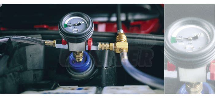 Přístroj k rychlému naplnění chladicího systému automobilu bez tvorby bublin a nutnosti následného odvzdušňování systému.- pomocí stlačeného vzduchu (6 - 10 bar) a Venturiho trysky vytvoří přístroj v chladicím systému podtlak, tím se zároveň provede zkouška těsnosti, když je chladicí systém těsný, nasaje se do něho rychle a bez vzduchových bublin k přístroji napojená chladicí kapalina