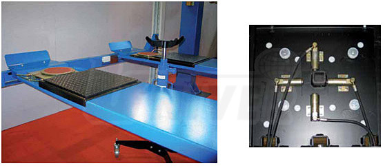 Elektrohydraulický přístroj pro zjišťování vůlí v zavěšení kol a řízení je určen pro instalaci na čtyřsloupové plošinové zvedáky a nůžkové zvedáky. Má dvě plošiny, které vykonávají čtyři protisměrné křížné pohyby, což umožňuje identifikaci vůlí v zavěšení kol i v řízení.Technické parametry:
