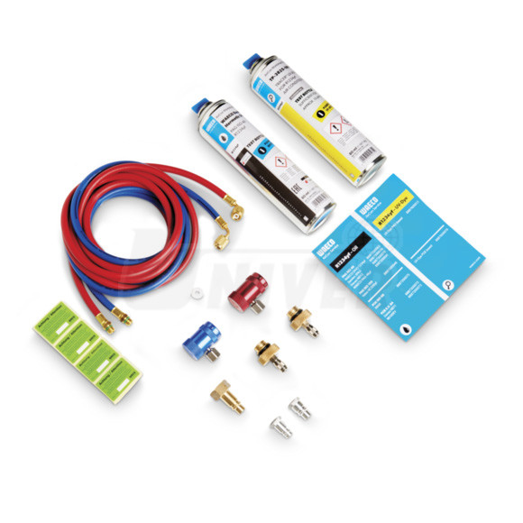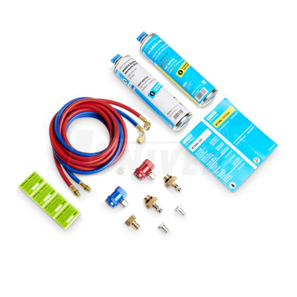 Pomocí těchto připojovacích sad lze přístroje WAECO ASC 7.3 / 7.3 LE / 7.4 / 7.4 LE dokompletovat pro servis klimatizací s konkrétním chladivem buď R1234yf, nebo R134a / R456A / R513A. Ke každému přístroji lze připojit jen jednu připojovací sadu, tedy pro R1234yf nebo pro R134a / R456A / R513A. Sady obsahují servisní spojky, nádobky s olejem a UV-aditivem, připojovací port, adaptér na láhev s chladivem.