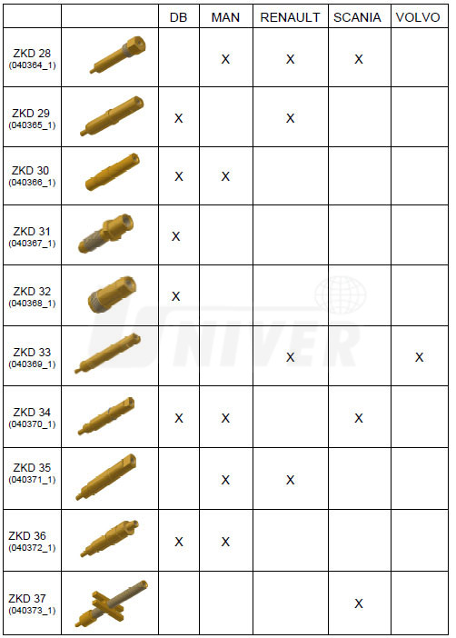 Typ DRV 05 (041113) je určen pro zážehové i vznětové motory. Dodává se s regulačním ventilem, s připojovací hadicí dl. 1 m s rychlospojkou a se závitovým adaptérem ZKS 01.1 (M14x1,25 a M18x1,5).