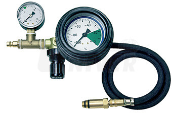 Diagnostické přístroje Leitenberger DRV 05 / DRV 05.3 / DRV 06 vysoké kvality (vyrobeno v Německu) umožňují změřit ztráty tlaku ve spalovacím prostoru na základě množství unikajícího vzduchu různými netěsnostmi. Bez nákladné demontáže lze zjistit, zda jde o podpálené ventily, netěsné pístní kroužky, vadné těsnění pod hlavou válců apod.Přes otvor pro zapalovací nebo žhavicí svíčku se pomocí přístroje přivede do spalovacího prostoru s pístem zpravidla v horní úvrati stlačený vzduch (z dílenského rozvodu nebo z kompresoru) a následně se změří pokles tlaku. Precizní tlakoměr má vyznačené zelené pole, které značí přijatelný pokles tlaku 23 %. Pro zážehové a vznětové motory pracuje přístroj s tlakem vzduchu v rozsahu 6 až 14 bar.