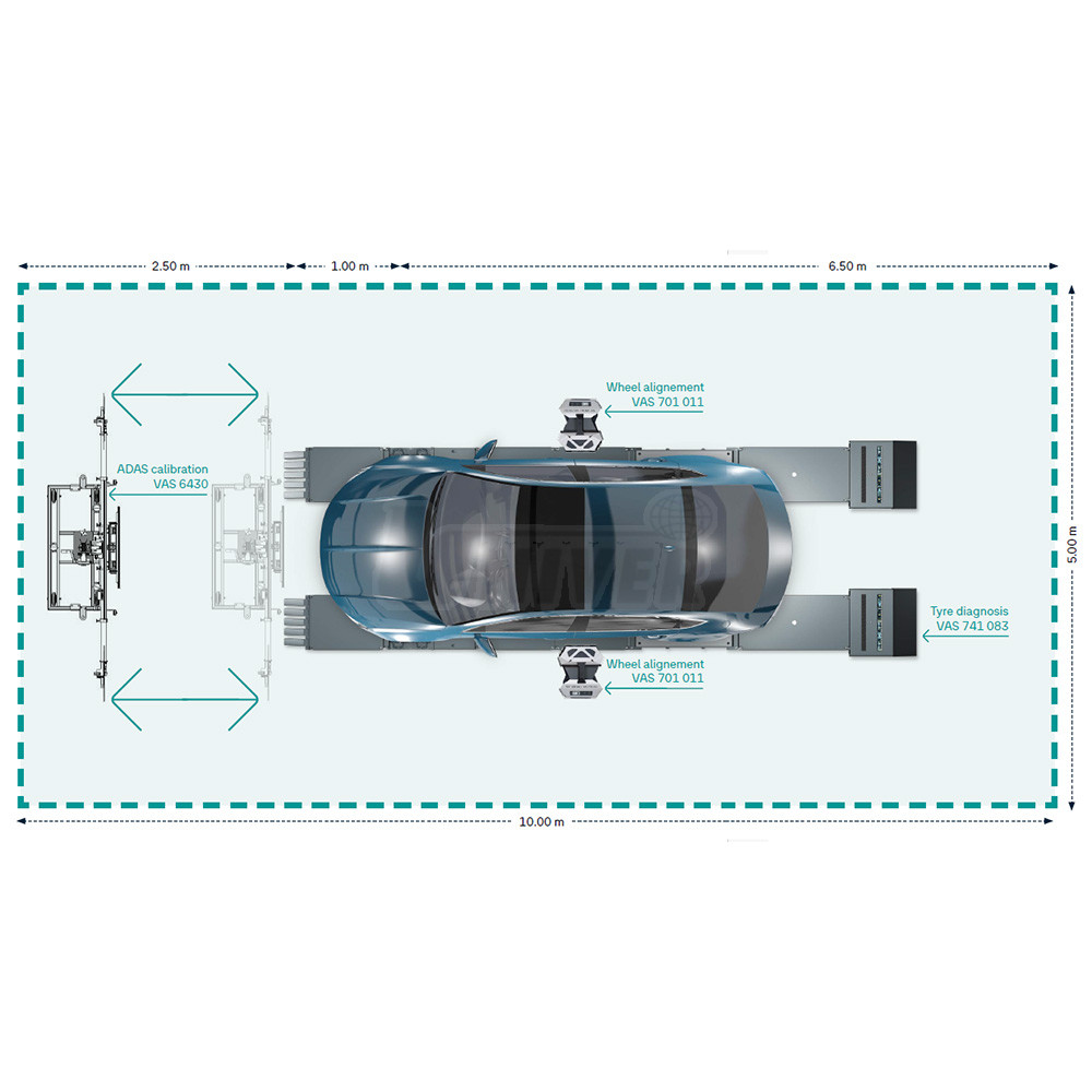 - prostor před zvedákem lze trvale využívat například pro seřízování světlometů nebo kalibraci asistenčních systémů řidiče (ADAS)