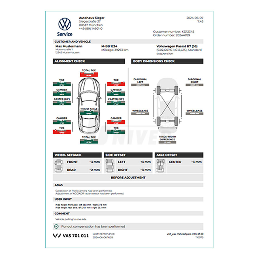 - měření všech běžných parametrů vozidel, včetně rozměrů vozidla, pro snadné zjištění deformací rámu