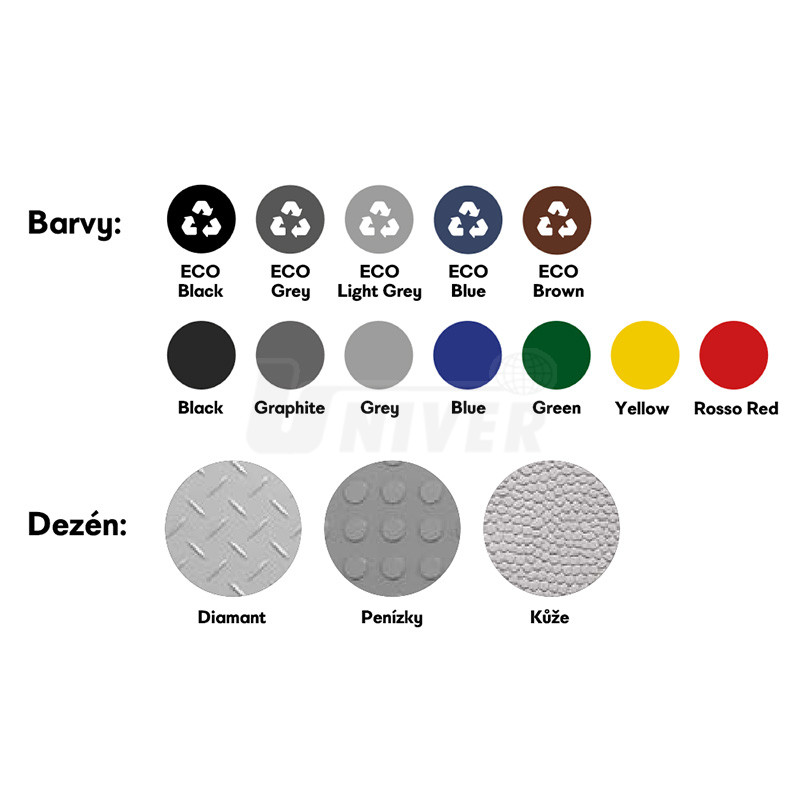 - dodává se i příslušenství, jako jsou nájezdové hrany, zakončovací rohy, podlahové / soklové lišty atd.
