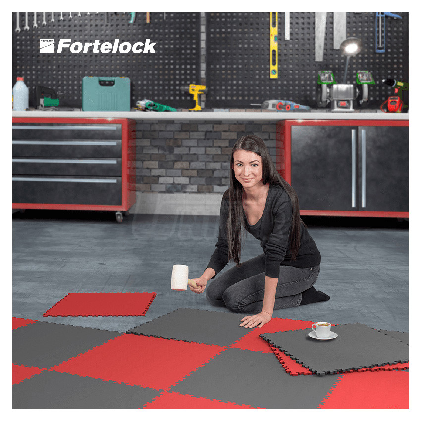 Řada podlahových PVC dlaždic určená pro rovný podklad a střední zátěž, jaké se aplikují v autoservisech, v pneuservisech, v garážích, ve skladech, v obchodech apod..- dlaždice Fortelock XL jsou vyrobené v České republice z vysoce odolného homogenního 100 % PVC (100 % recyklovatelný)