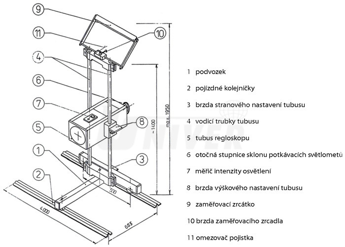 - je vybaven zrcadlem pro nastavení optické osy tubusu do podélné osy vozidla