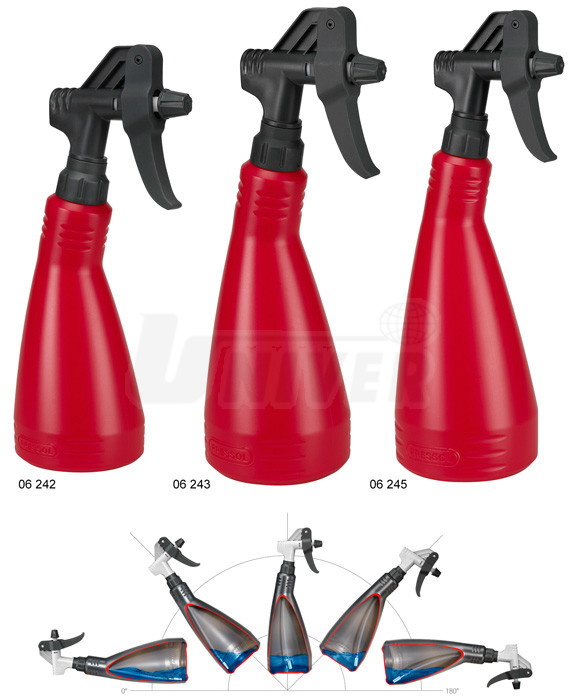 Polyetylénové rozprašovače s dvojčinnou pumpou pro průmyslové využití s nastavitelnou plastovou tryskou o objemu 500 / 750 / 1000 ml.- výborně se uplatní v řadě průmyslových odvětví, ve stavebnictví, v řemeslnických dílnách, v údržbě apod.