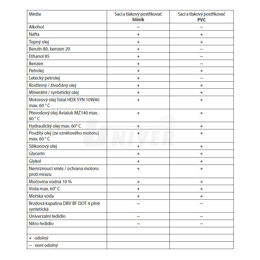- vysoce kvalitní manžety zaručují spolehlivé a účinné nasávání kapalin