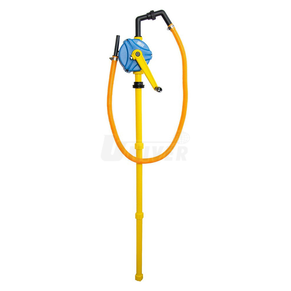 Ručné rotačné sudové čerpadlo s kľukou a deleným vývodom na čerpanie AdBlue, nafty, strojového oleja, kyselín, zásad, vody a chemikálií na báze vody zo 60 l / 110 l / 210 l sudov.- široké využitie na čerpanie AdBlue, nafty, strojového oleja, kyselín, zásad, vody a chemikálií na báze vody zo 60 l / 110 l / 210 l sudov