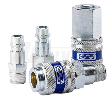 Ocelové rychlospojky a vsuvky na stlačený vzduch, pozinkované, s vnějšími i vnitřními závity a s připojeními na hadice.- profesionální univerzální rychlospojky a vsuvky z vysoce kvalitní, tvrzené oceli, mají speciální pozinkování a odpovídají zvýšeným nárokům na průmyslové nasazení
