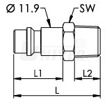 | typ | závit | L (mm) | L1 (mm) | L2 (mm) | SW (mm) |