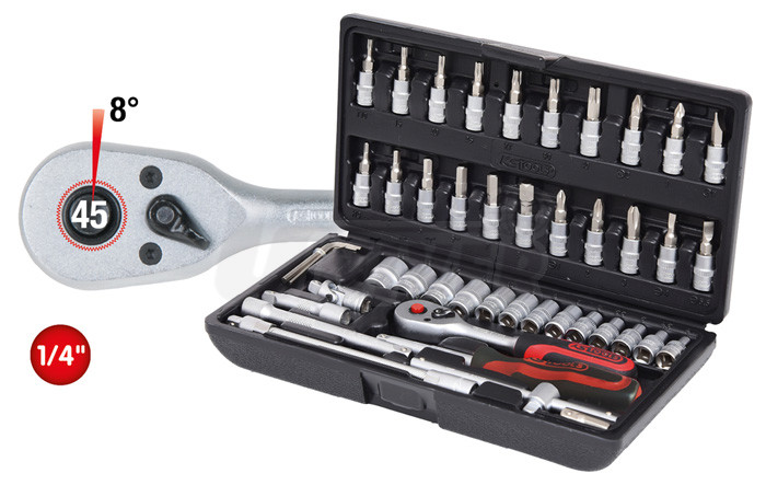 48-dílná sada nástrčných klíčů 1/4" (chrom-vanadium) profilu FlankTraction v plastovém kufříku.- materiál: chrom-vanadium