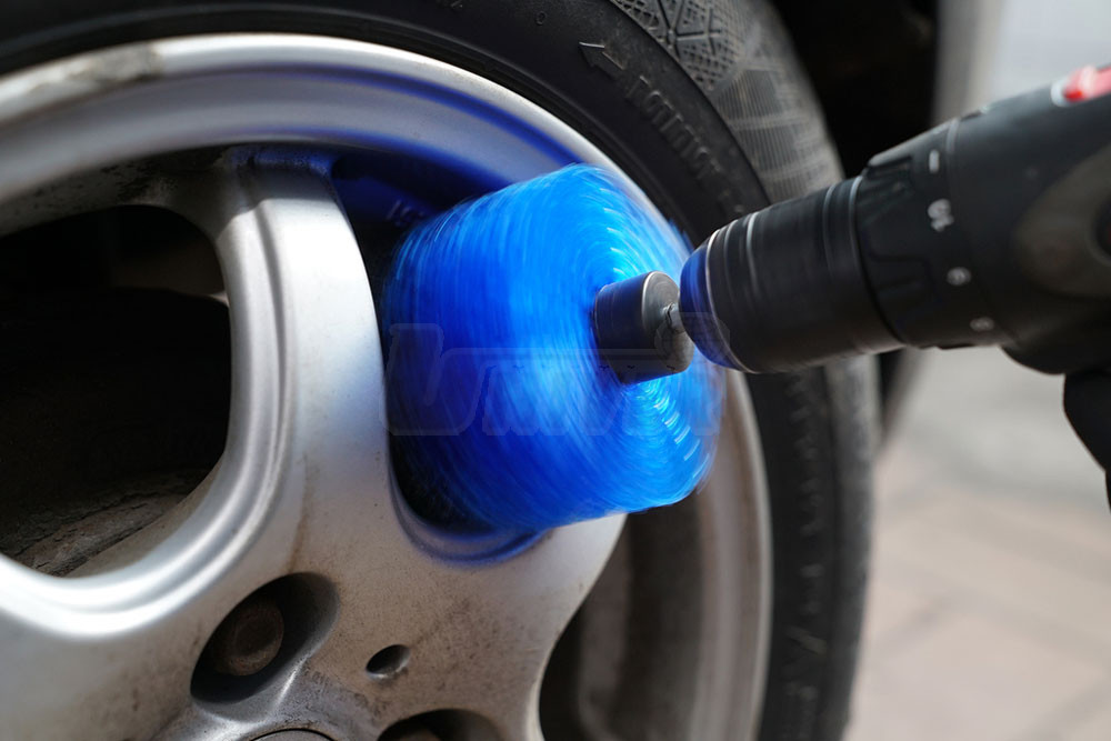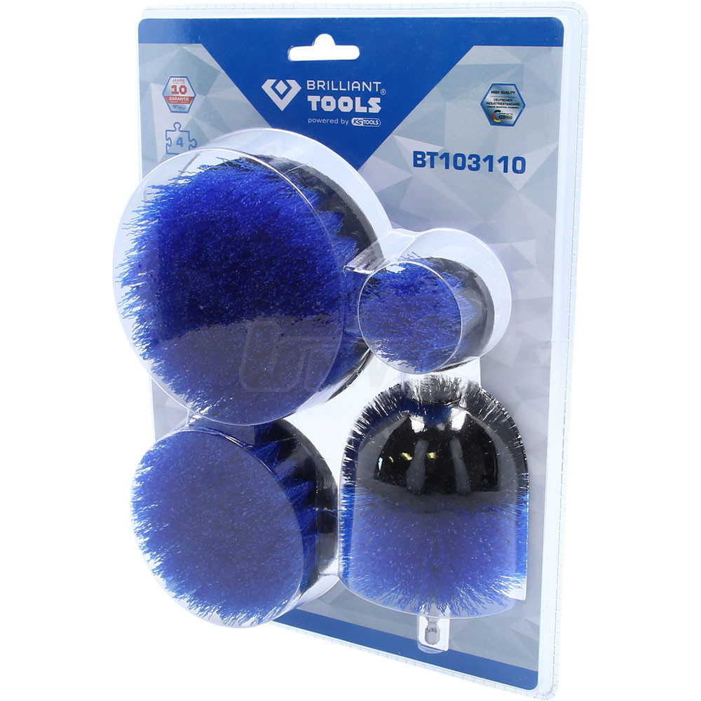 4-dílná sada kartáčů se štětinami z odolného plastu / PP pro upnutí do vrtačky.- dřík šestihran 1/4" pro upnutí do vrtačky nebo aku-šroubováku