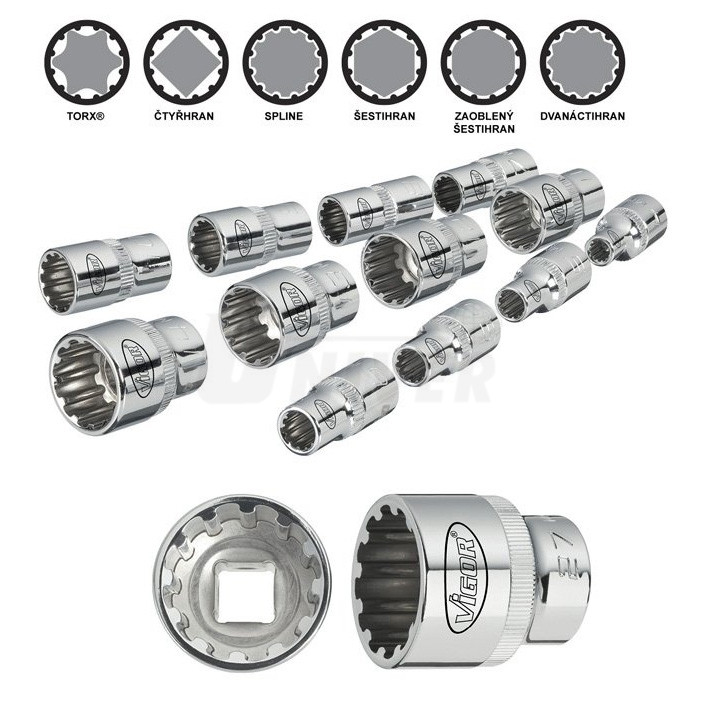 Sada multiprofilových nástrčných hlavíc VIGOR V1897