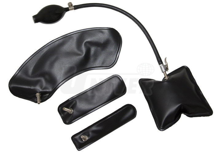 Sada 4 nafukovacích polštářků / vaků a balónková pumpička s koncovkou na ventily pneumatik pro odtlačování dveří, karosářských dílů, čalounění, lze použít i pro fixaci součástí apod.- 4-dílná sada nafukovacích polštářků / vaků a balónková pumpička pro odtlačování dveří při jejich nouzovém otvírání, pro odtlačování karosářských dílů, čalounění apod.