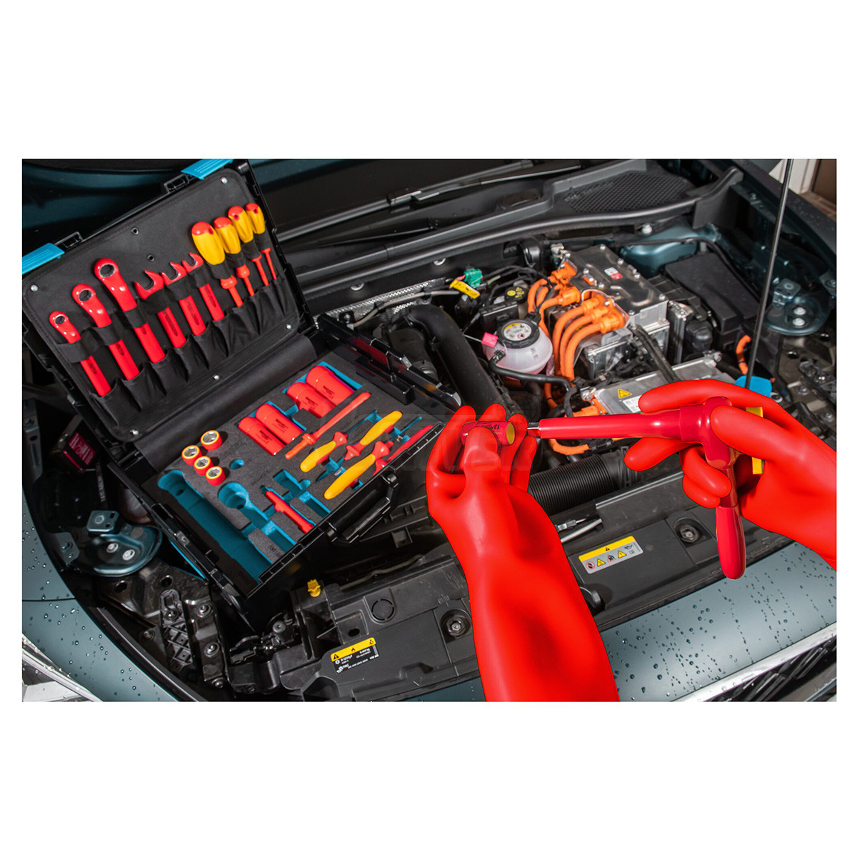 27-dílná sada nářadí 3/8" s VDE izolací do 1000 V pro veškeré práce na vysokonapěťových systémech- v souladu s normou IEC 60900:2018 / ČSN EN IEC 60900 ED.4 (359704)