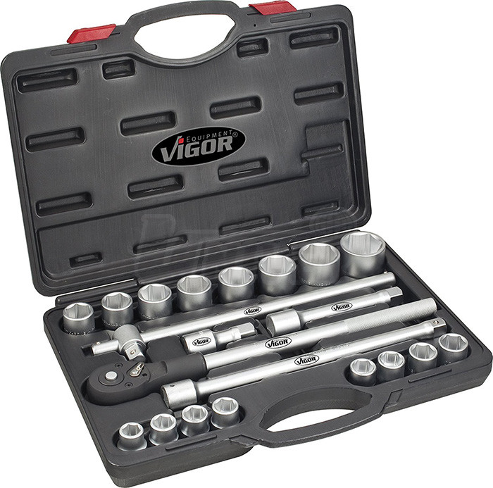 21-dielna súprava nástrčných kľúčov so šesťhranom 3/4" v plastovom kufríku je vyrobená z kvalitného chróm-vanádu.Obsahuje nasledujúce komponenty: