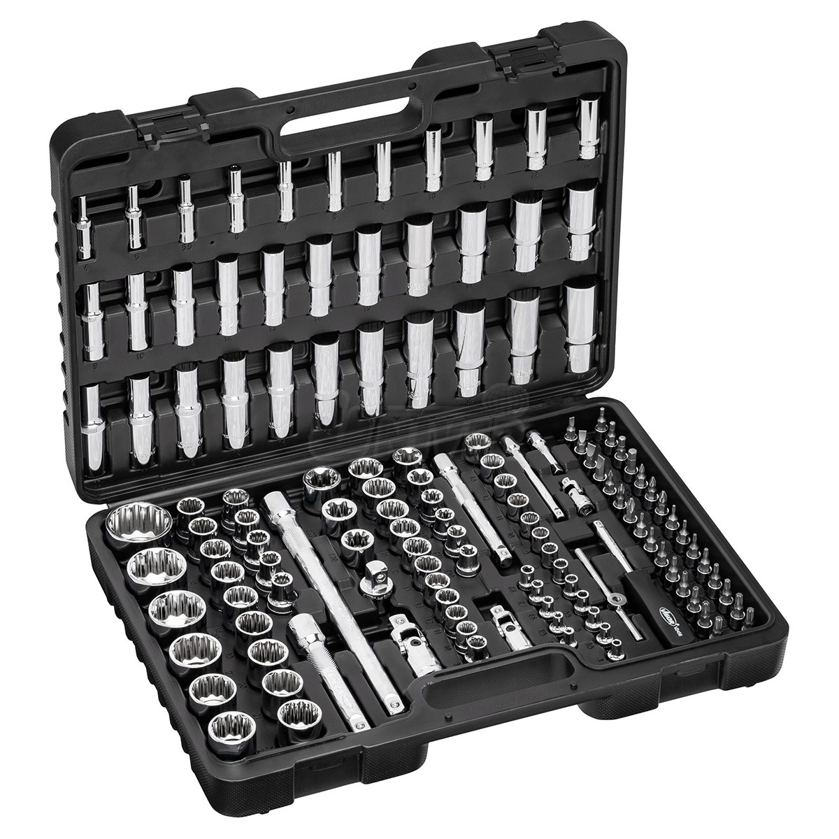 133-dílná sada nástrčných klíčů / hlavic / bitů 1/4"-3/8"-1/2" v plastovém kufříku je vyrobena z kvalitního chrom-vanadia.Sada obsahuje: