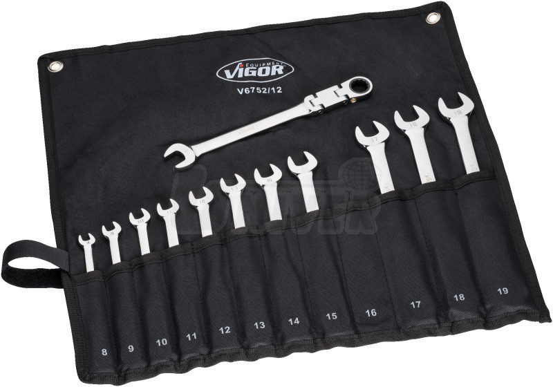 Sada očkoplochých račňových kľúčov s dvojitým kĺbom VIGOR V6752/12