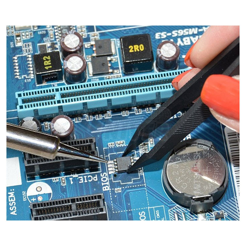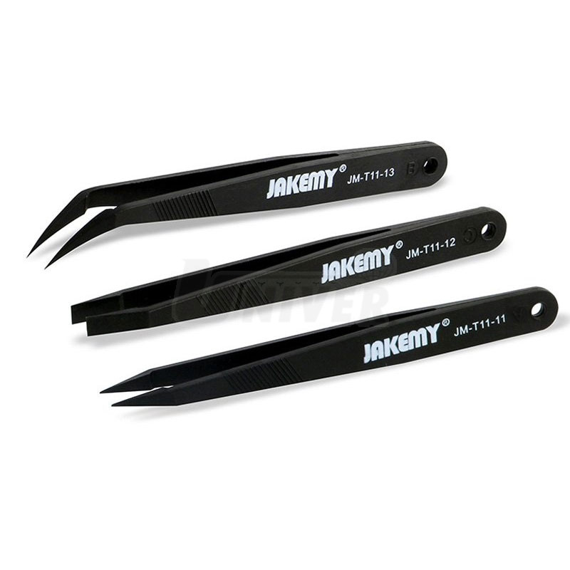 Sada 3 antistatických nekovových precizních pinzet s různě tvarovanými konci čelistí s vynikající odolností proti kyselinám a vysoké teplotě.- praktická sada 3 pinzet s různě tvarovanými konci: ploché čelisti, s rovnou a zahnutou špičkou