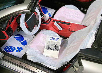 7-dílná sada ochranných povlaků v mikrotenovém sáčku.