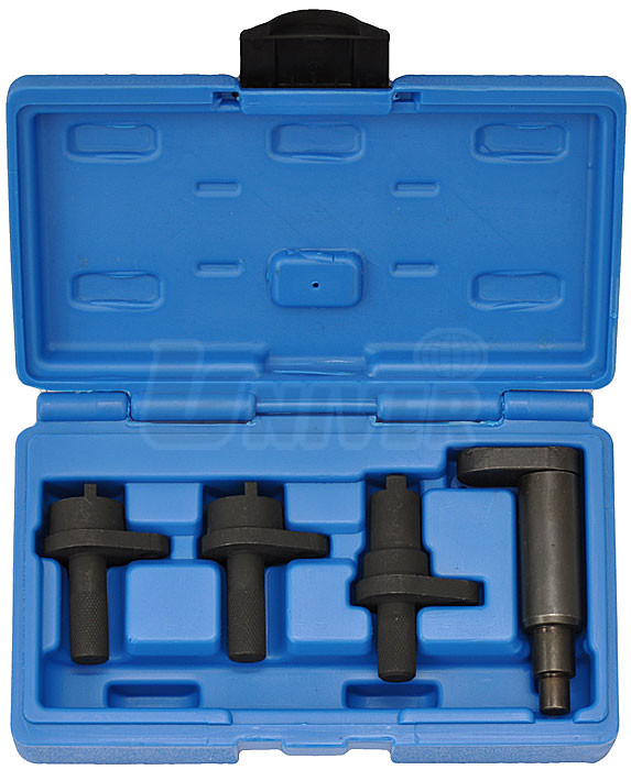 Sada zajišťovacích kolíků/přípravků (4-dílná) pro nastavování / časování rozvodů motorů VW/Škoda/SEAT se používá pro zafixování klikových a vačkových hřídelí u 3-válcových motorů 1,2 6V a 12V vozů VW Polo a Fox, Škoda Fabia, SEAT Ibiza a Cordoba.