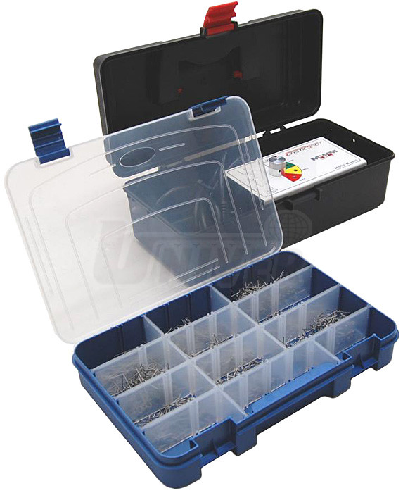 - sada 9 různých sponek 31055 (310500, 13105002, 3105003, 3105004, 3105005, 3105006, 3105007, 3105008, 3105009) vždy po 100 kusech (celkem 9x100 ks) v plastové krabici.