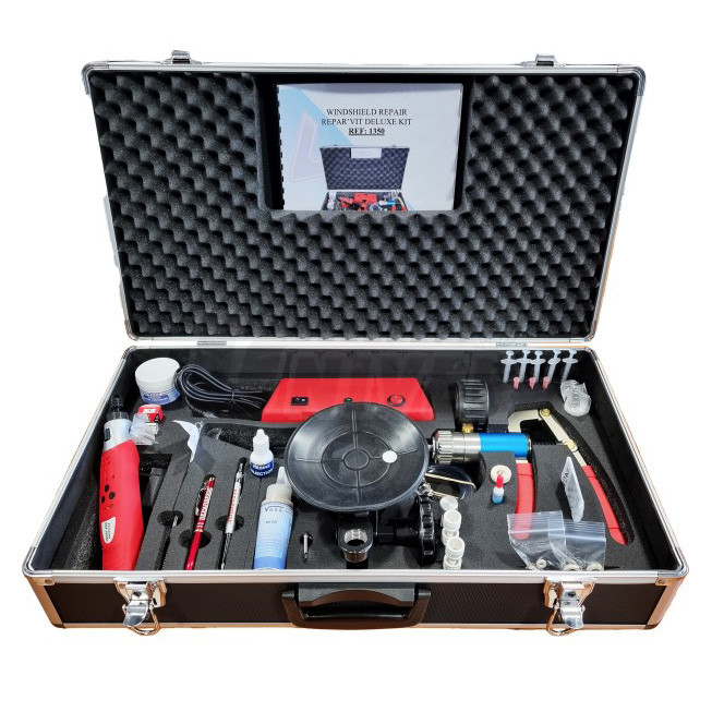 1 ks aluminiový kufřík 1 ks můstek se zdvojeným nastavovacím ramenem 1 ks UV lampa 12 V s časovačem pro vytvrzování pryskyřice 1 ks tlaková / podtlaková pumpička 1 ks speciální těsnicí mazivo na přísavky 1 ks svítící (LED) zrcátko 6,5 x 4 cm 1 ks tužková svítilna 1 ks lešticí pasta 60 ml 1 ks standardní opravárenská vstřikovací pryskyřice 15 ml 1 ks bateriová vrtačka 1 ks karbidový bit do vrtačky / leštičky 1 ks speciální přípravek / pero s karbidovou špičkou 5 ks seškrabovacích žiletek 1 ks ampule speciální dokončovací pryskyřice (stačí pro více než 40 oprav) 10 ks čtverečků mylarové fólie 5 ks injekčních stříkaček a 3 ks jehel 1 ks aluminiový šroubek pro můstek 366 a 980 1 ks nylonový čisticí kartáček pro hadičku HOS-2000 1 ks nylonový čisticí kartáček pro vstřikovač 2 ks vstřikovače vybavené 5 hubičkami, což umožňuje větší podtlak 1 ks hadička s hydraulickou spojkou (1 m) pro 5059, 5062, 1320 a 1350) 1 ks standardní vstřikovač pro standardní praskliny 1 ks standardní vstřikovač pro velké praskliny 5 ks pryžových těsnění pro velké praskliny 5 ks pryžových těsnění pro standardní praskliny 1 ks plstěný lešticí kotouček se stopkou 1 ks speciální pryskyřice pro opravy trhlin 1 ks český návod na použití |