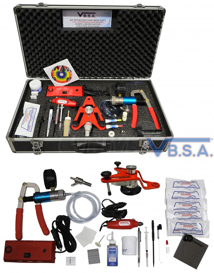 Sada pro profesionální opravy čelních vrstvených skel motorových vozidel poškozených nejčastěji úderem kamene.Opravy poškození čelních skel pomocí této sady jsou poměrně snadno a rychle proveditelné tak, že se prasklina nebo kráter ve skle nahradí speciální hmotou na bázi pryskyřice, opravou se obnoví téměř zcela původní průhlednost skla a rovněž jeho pevnost a stabilita, navíc náklady na takovou vysoce kvalitní opravu jsou jen zlomkem nákladů spojených s výměnou celého čelního skla vozidla.