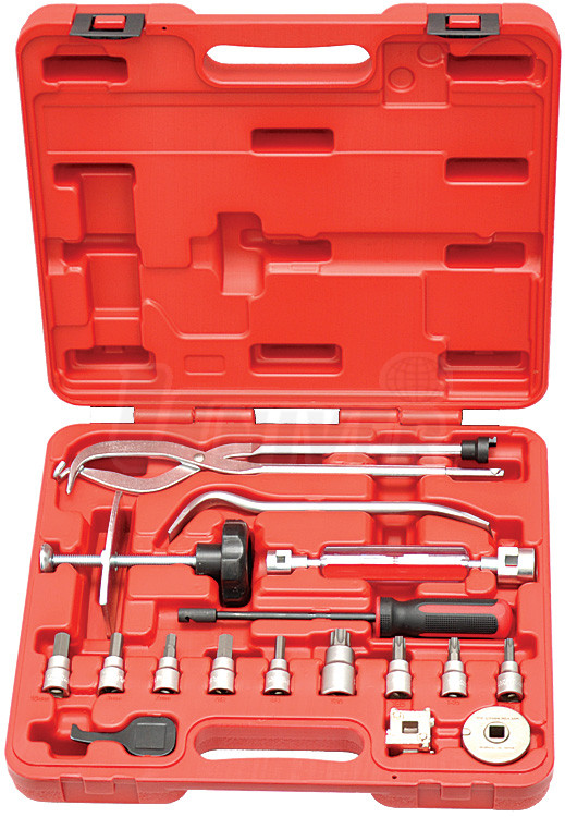 17-dílná sada pro servis brzd obsahuje následující komponenty:- 1 ks klíč na seřizování bubnových brzd,