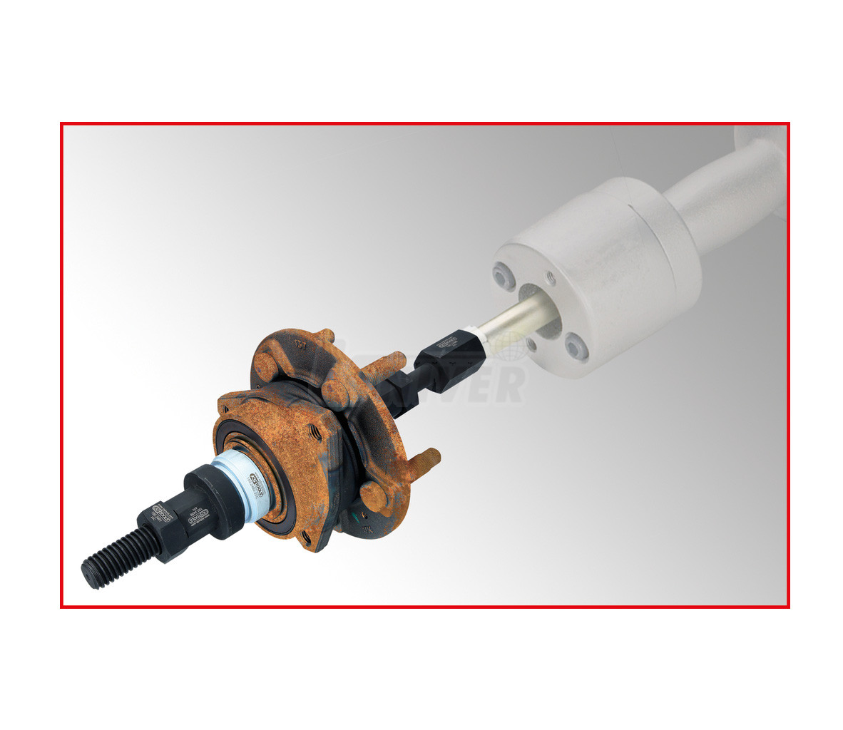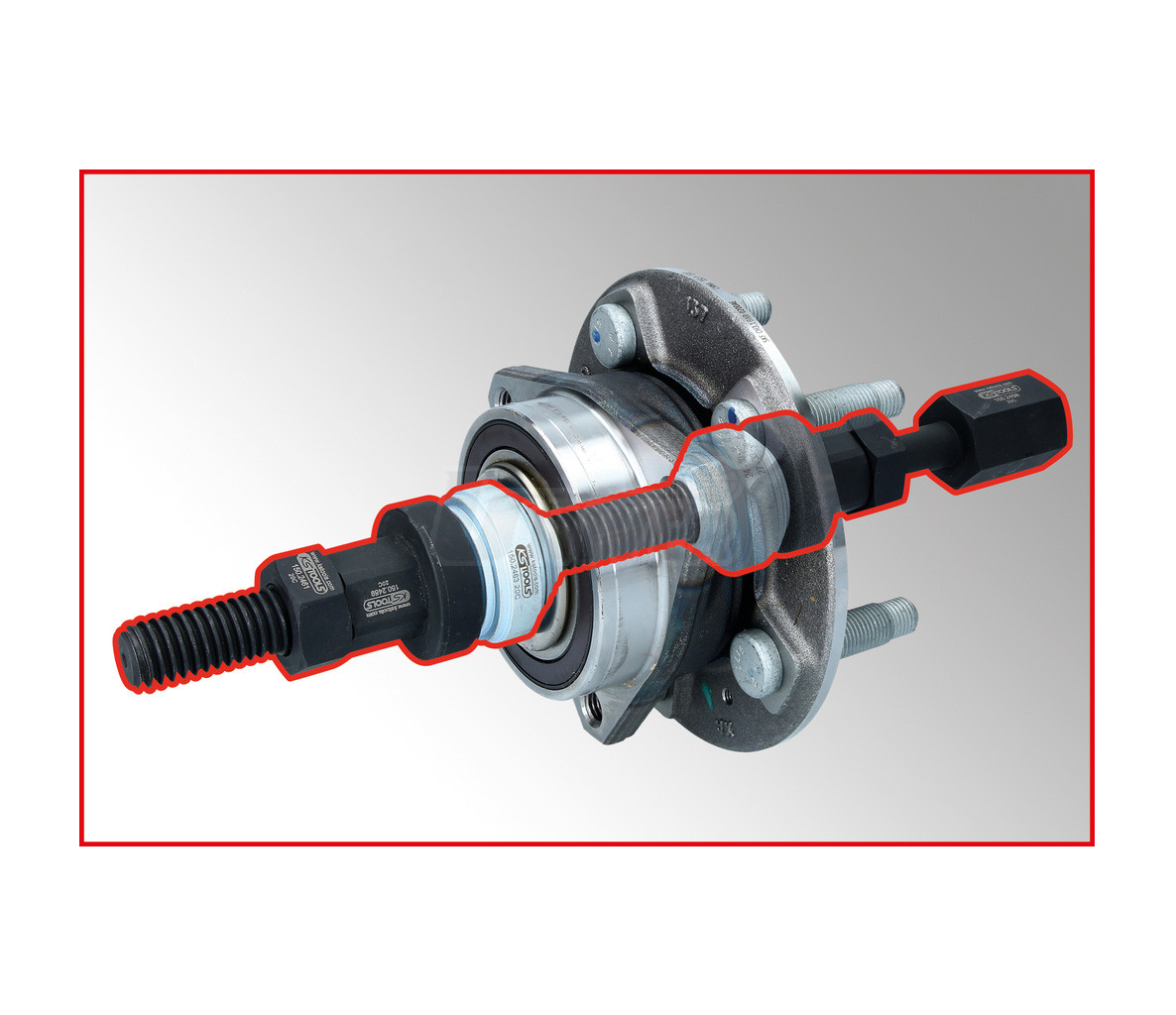 9-dílná sada přípravků pro demontáž kolových ložisek Ø 24 – 72 mm přímo na automobilu.