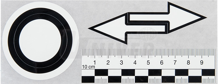 Sada samolepek pro označování poškození karosérií obsahuje vždy 2 šipky, 1 kroužek a 1 pravítko a dodává se v roli s 50 kusy samolepek.- sada samolepek k označování míst, kde došlo k poškození karosérií