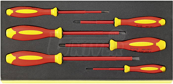 6-dílná sada ochranně izolovaných VDE plochých a křížových šroubováků.- nejvyšší kvalita garantovaná renomovanou značkou Stahlwille, vyrobeno v Německu