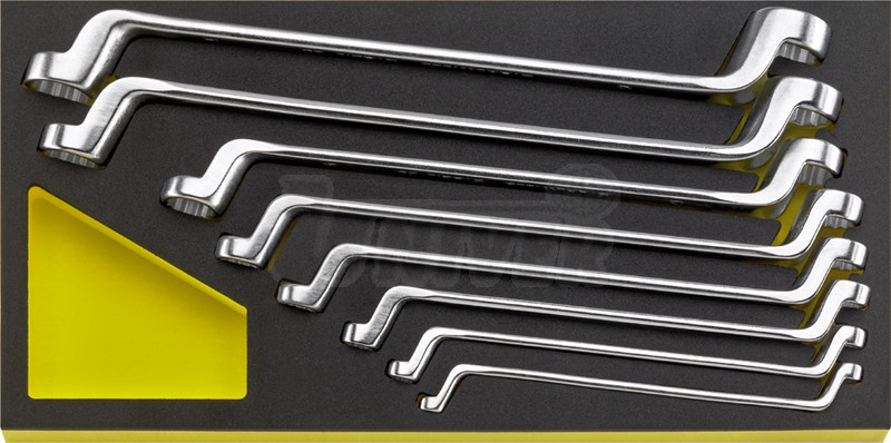 8-dílná sada tenkých oboustranných vyhnutých (75°) očkových klíčů pro práci v omezeném prostoru.- nejvyšší kvalita garantovaná renomovanou značkou Stahlwille, vyrobeno v Německu