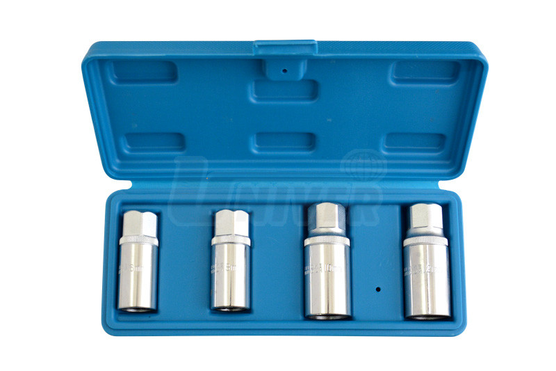 Sada 4 vytahováků závrtných šroubů (tzv. šteftů) a svorníků v praktickém plastovém kufříku.- sada 4 speciálních přípravků používaných zejména pro vytahování závrtných šroubů (tzv. šteftů)