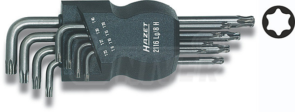 Sada zahnutých kľúčov TORX HAZET 2116LG/8H