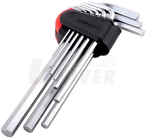 10-dílná sada zahnutých zástrčných 6-hranných imbusových klíčů 1,5 - 12.- klíče pro hlavy šroubů s vnitřním šestihranem střední délky z vysoce kvalitní chrom-vanadiové oceli