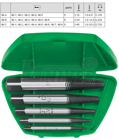 Kukko 49-A Sada pro vyšroub.ulomených šroubů na objednávku