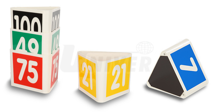 trojúhelníkové nosiče číselného označení mají z jakéhokoliv úhlu pohledu dobře viditelná čísla na všech třech bočních stranách