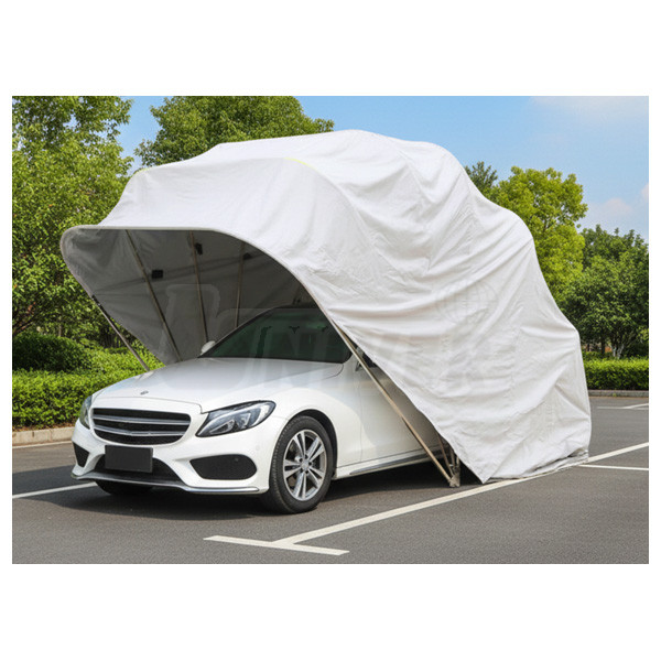 Skladacia / zaťahovacia prenosná garáž pre osobné automobily v extra odolnom prevedení s ľahkým ovládaním a jednoduchou inštaláciou.- veľmi dobrá ochrana vozidiel pred vetrom, dažďom, snehom, krúpami, prachom a ďalšími vplyvmi poveternosti