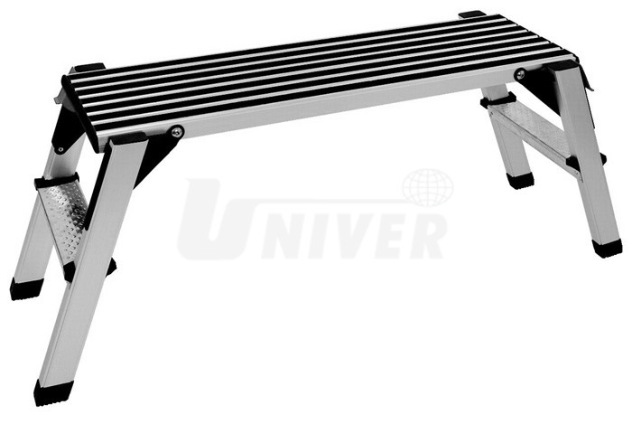 Hliníková skládací pracovní plošina s rýhovaným protiskluzovým profilem a se 2 schůdky na obou stranách.- stabilní konstrukce