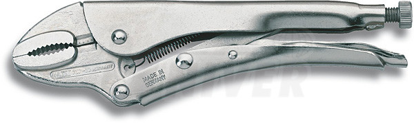 Univerzální skřipcové / přidržovací kleště z vysoce kvalitní poniklované oceli. Půlkulaté čelisti kleští bezpečně podrží kulatý materiál a jsou vhodné pro vysoké zatížení. Umožňují ovládání jednou rukou. Kleště se seřizovacím šroubem a převodovým mechanismem s lomenou pákou zaručují vysoký upínací tlak. Tělo kleští se skládá z vysoce pevnostní pružinové oceli a nasazených čelistí ze zápustkově kované chrom-vanadiové oceli.757-5 (0-25 mm, dl. 142 mm)