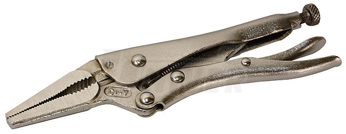 Skřipcové / přidržovací kleště z vysoce kvalitní poniklované oceli a čelistí ze zápustkově kované chrom-vanadiové oceli mají dlouhé čelisti a celkovou délku 160 mm.- přímé čelisti kleští bezpečně podrží materiál a jsou vhodné pro vysoké zatížení, umožňují ovládání jednou rukou
