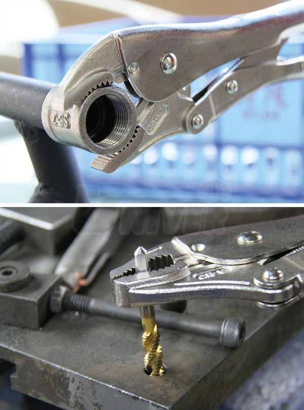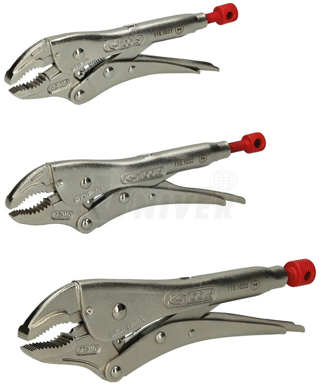 Skřipcové / přidržovací kleště s kovanými půlkulatými čelistmi ve 3 různých velikostech.- 3 velikosti univerzálních skřipcových / přidržovacích kleští dl. 140, 175 a 220 mm