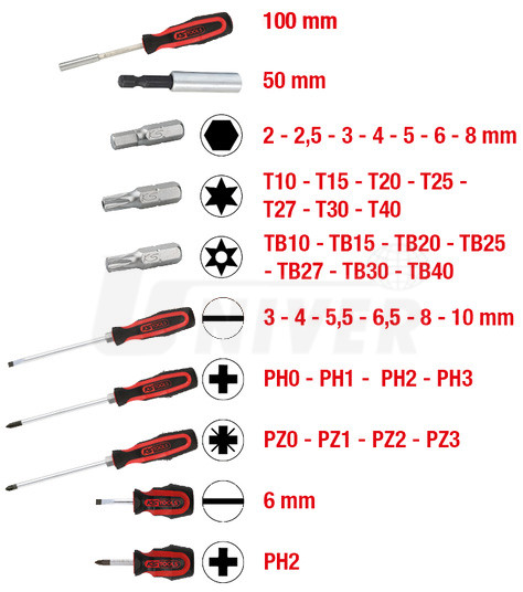 39-dílná sada šroubováků a bitů ERGOTORQUEplus z chrom-vanadia.- materiál: chrom-vanadium
